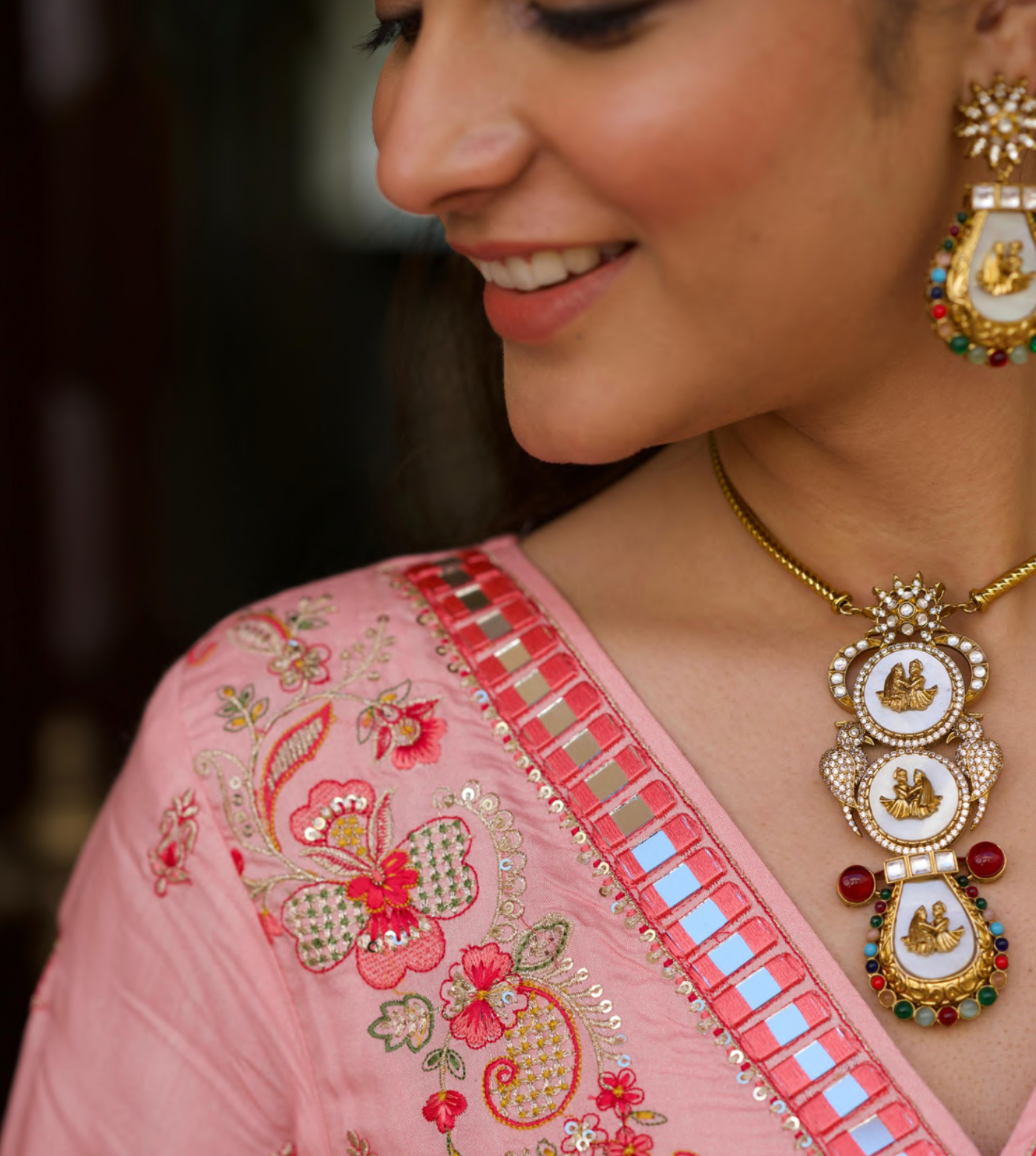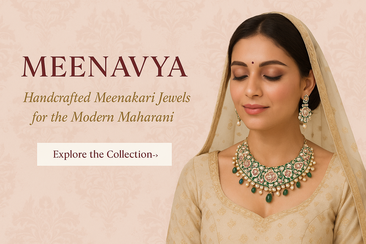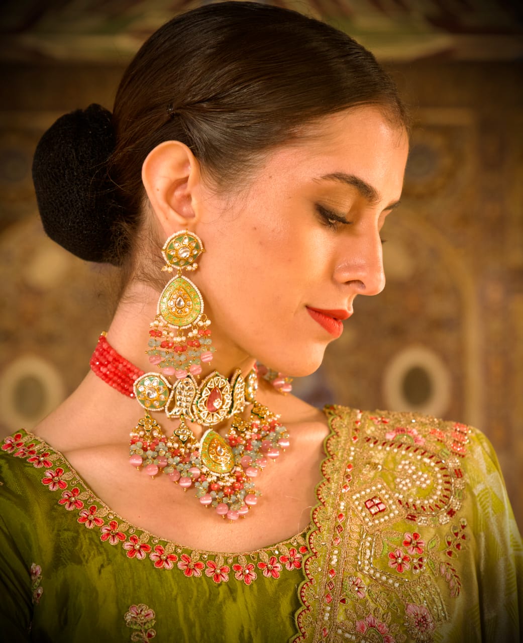 We have craftsmen with 15–20 years of Kundan & Meenakari expertise. Each piece takes 10–15 days to handcraft using traditional Jadau techniques perfected over 200+ years.