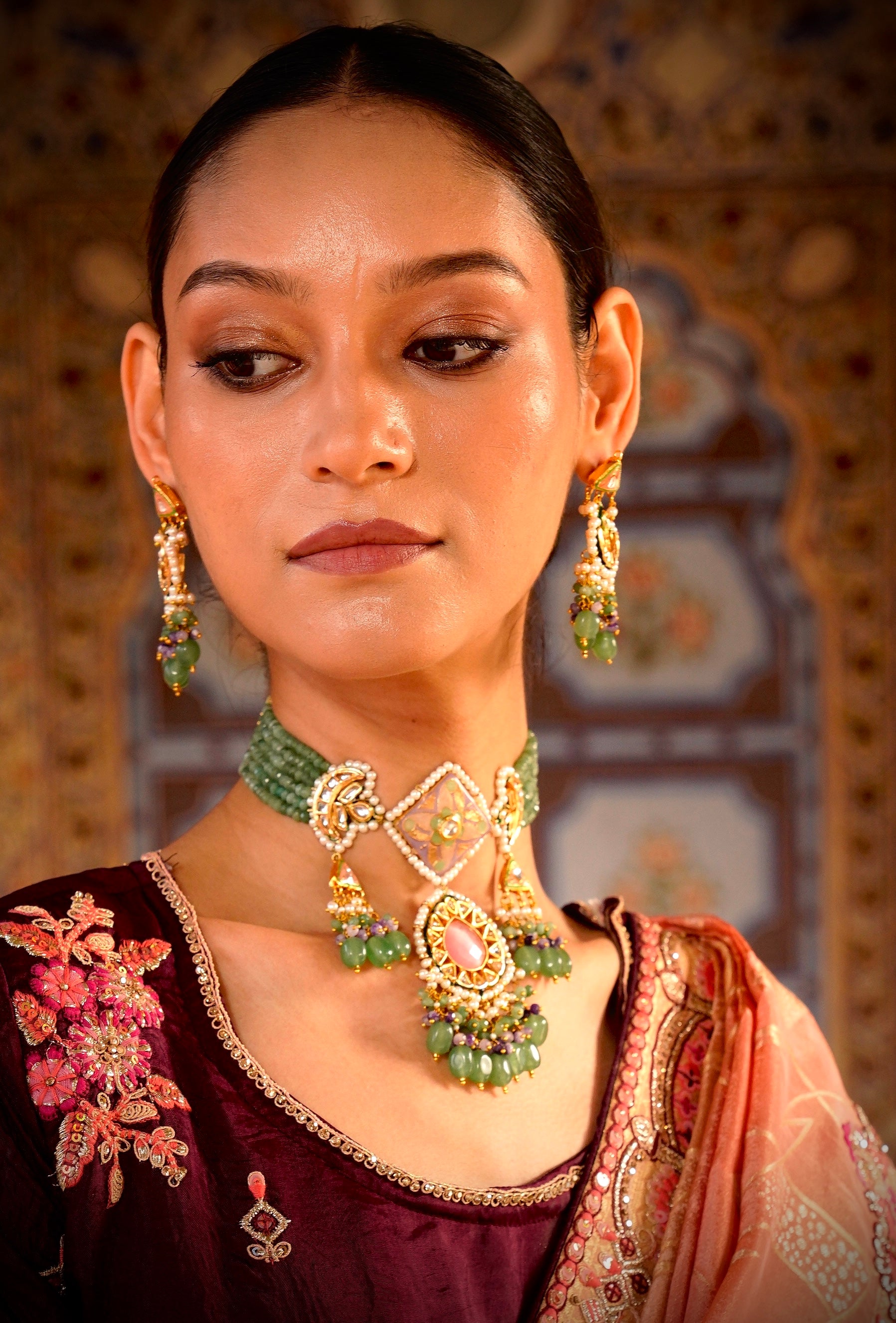 Made in our Jaipur workshop, not mass-produced. Every stone is individually set, every color hand-painted, exactly as done for centuries.