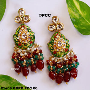 Explore the stunning Ethnic Meenakari Moti Bandai Work Jhumki Earrings Set at Pinkcity Craft.