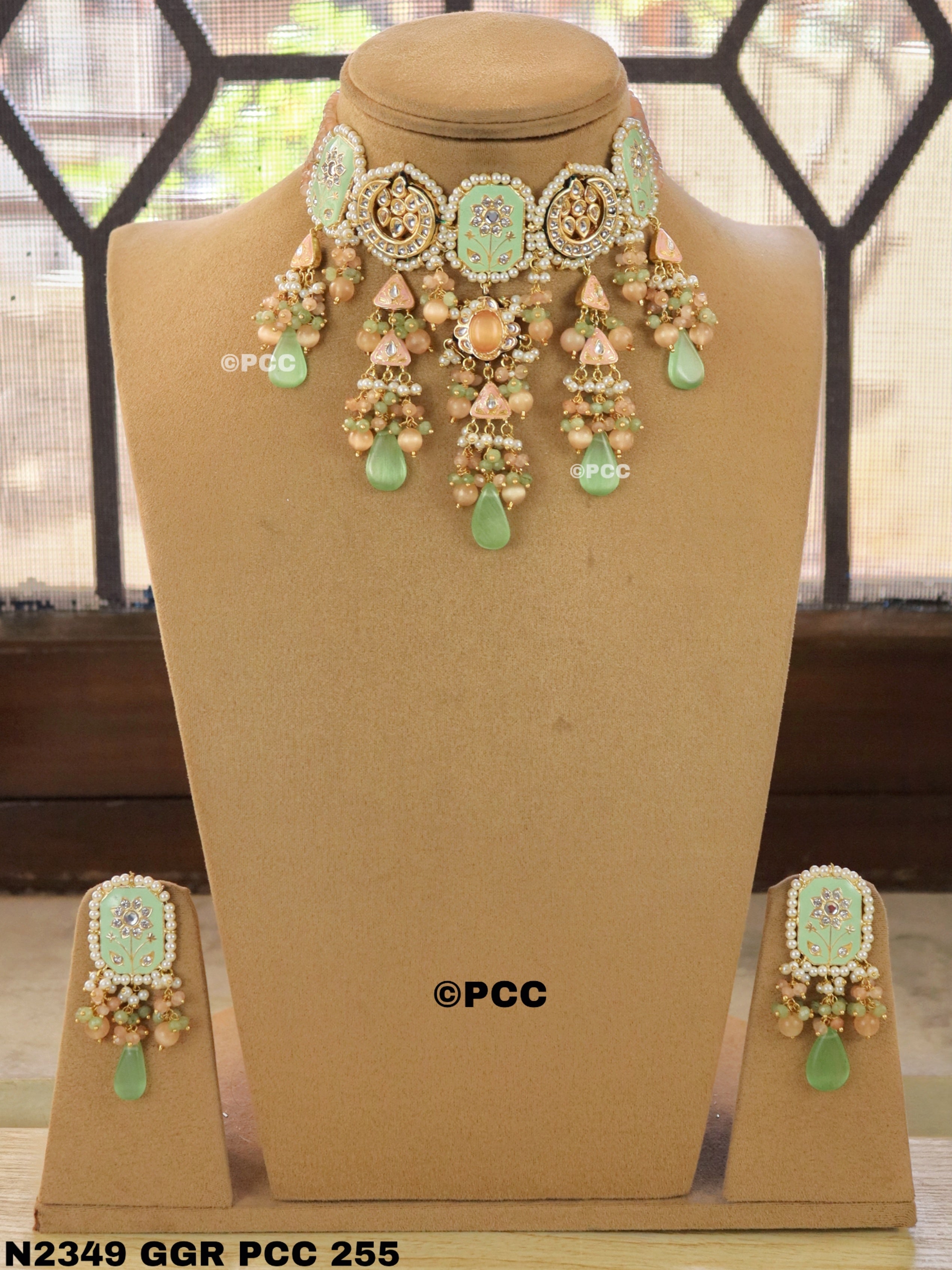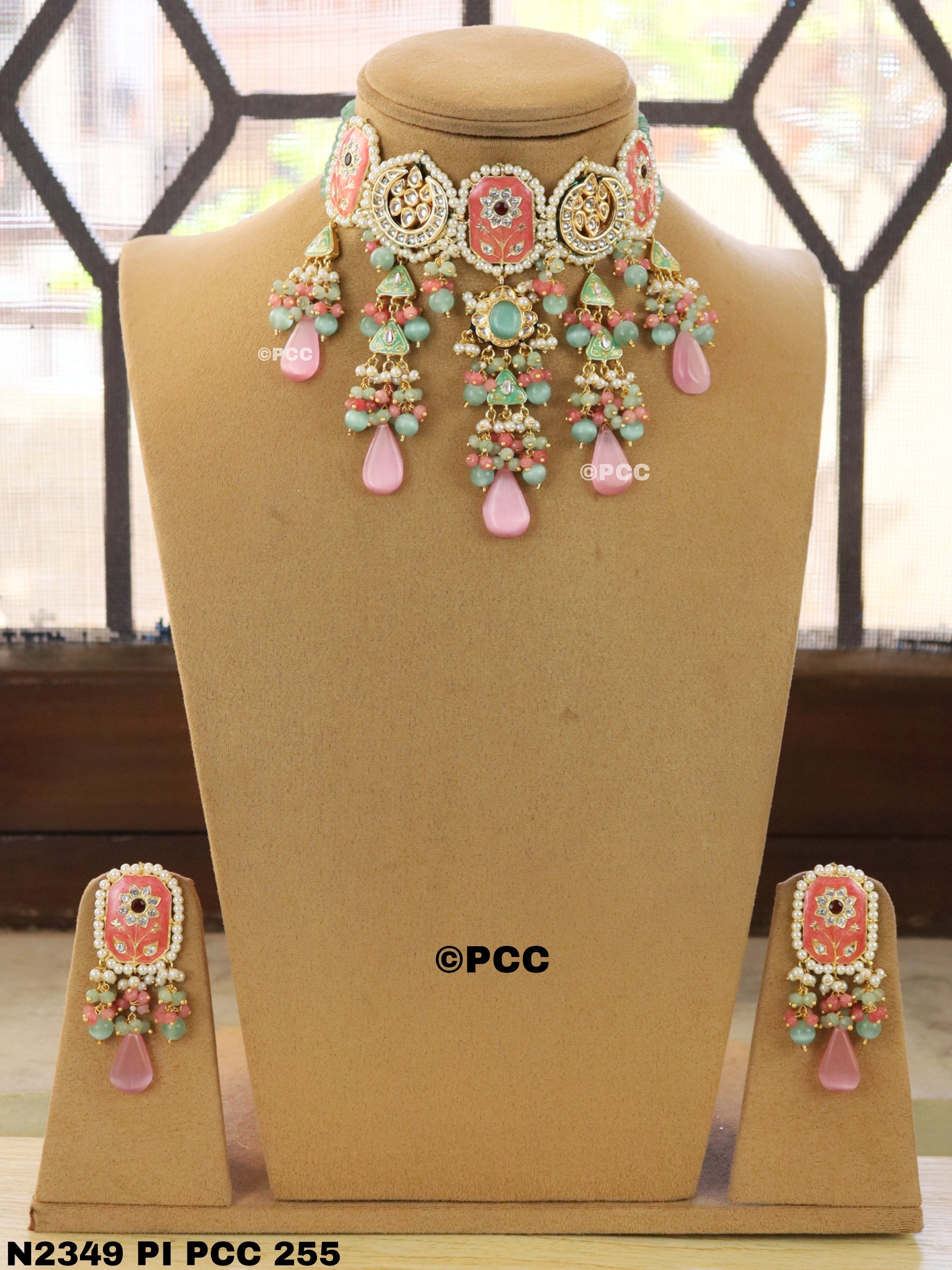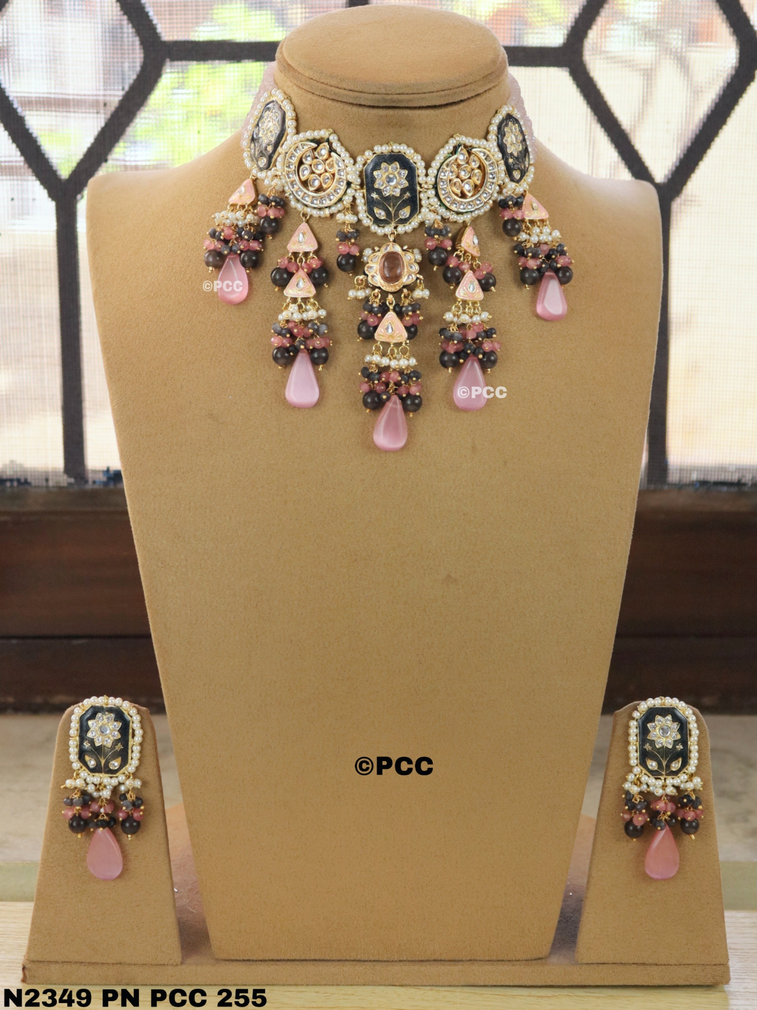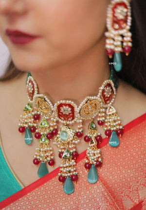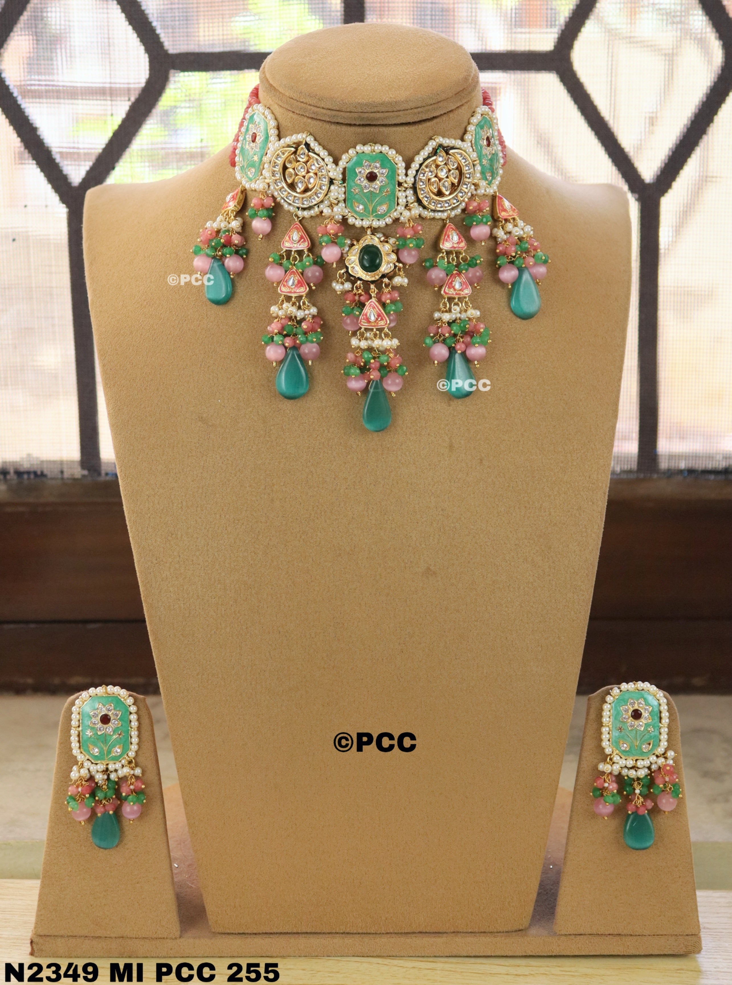 Jadau Meena Kundan Hand Work Necklace & Earrings.