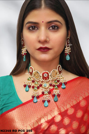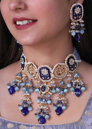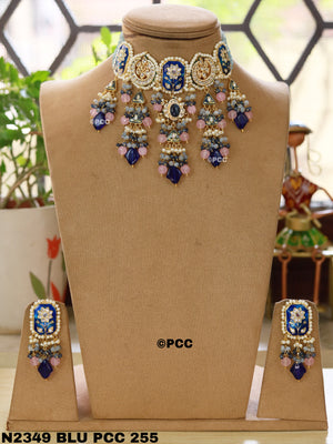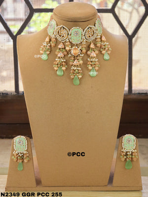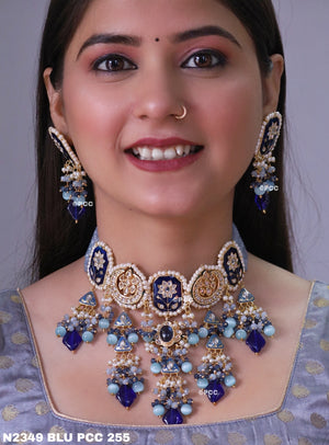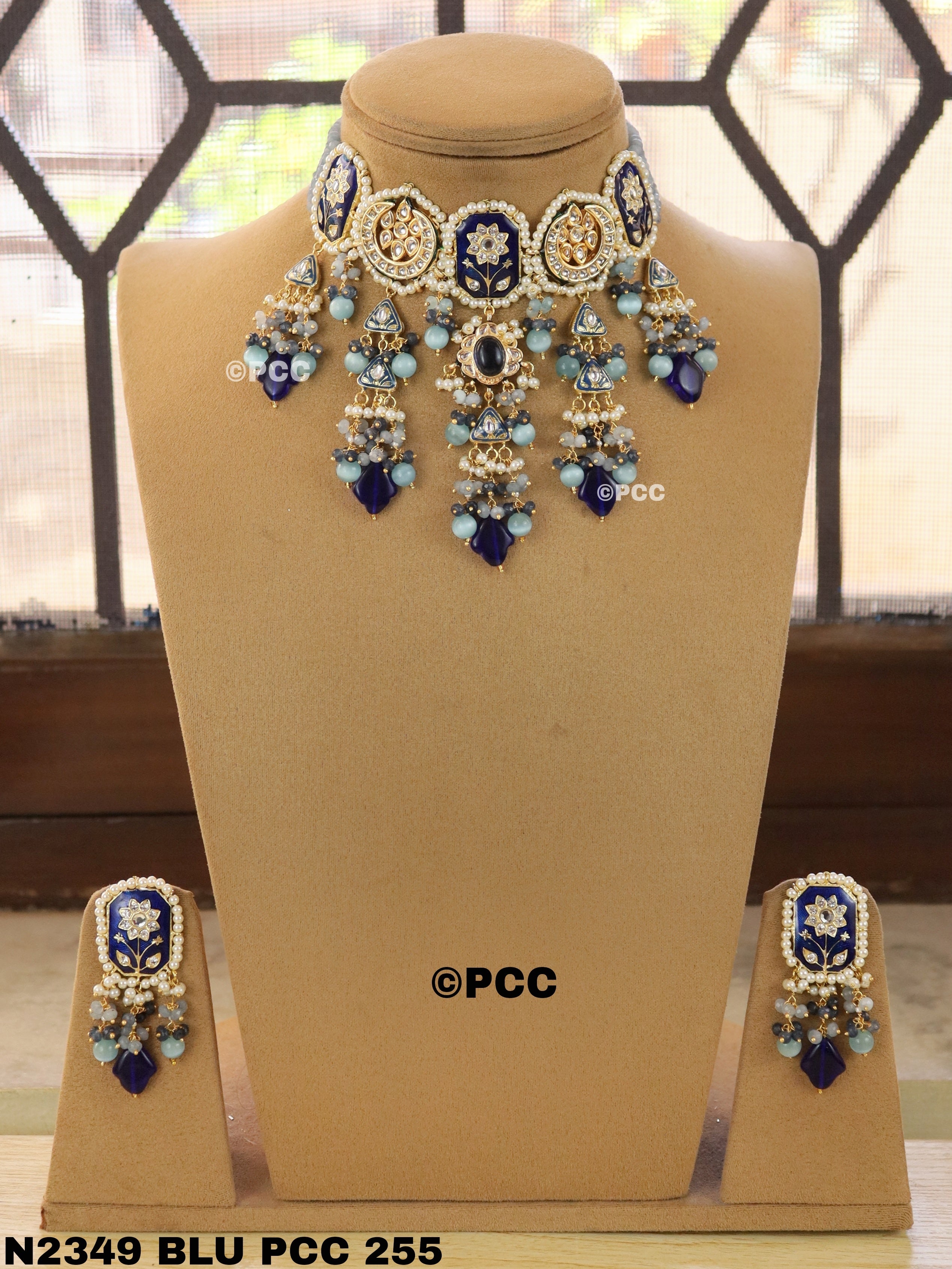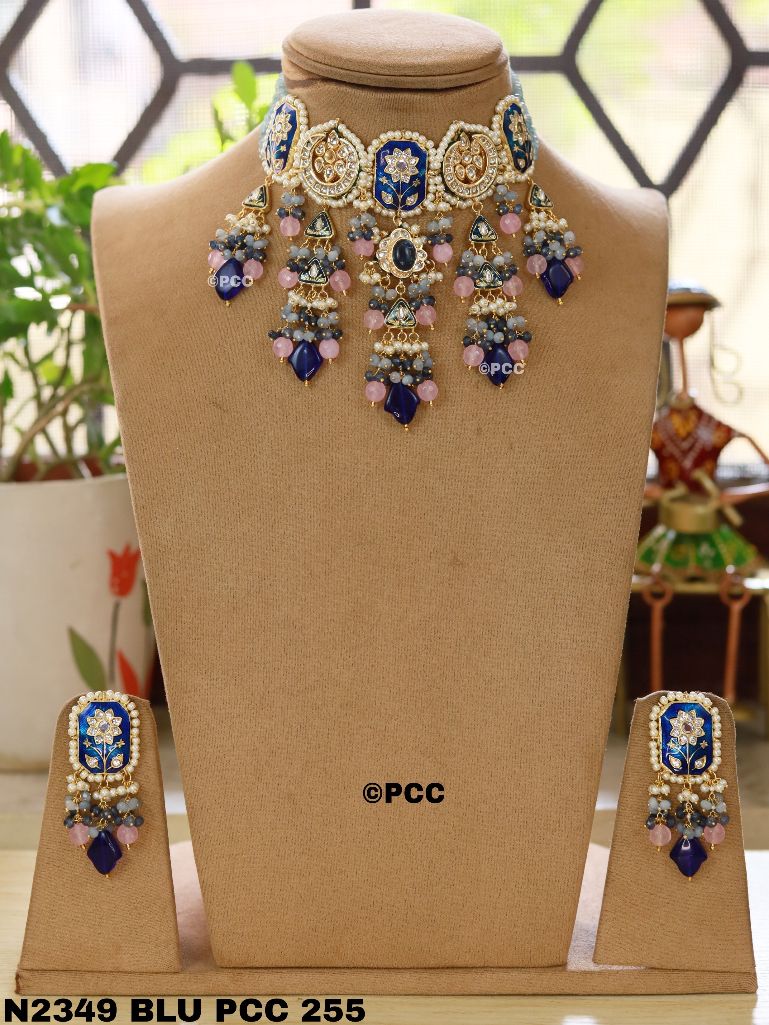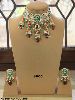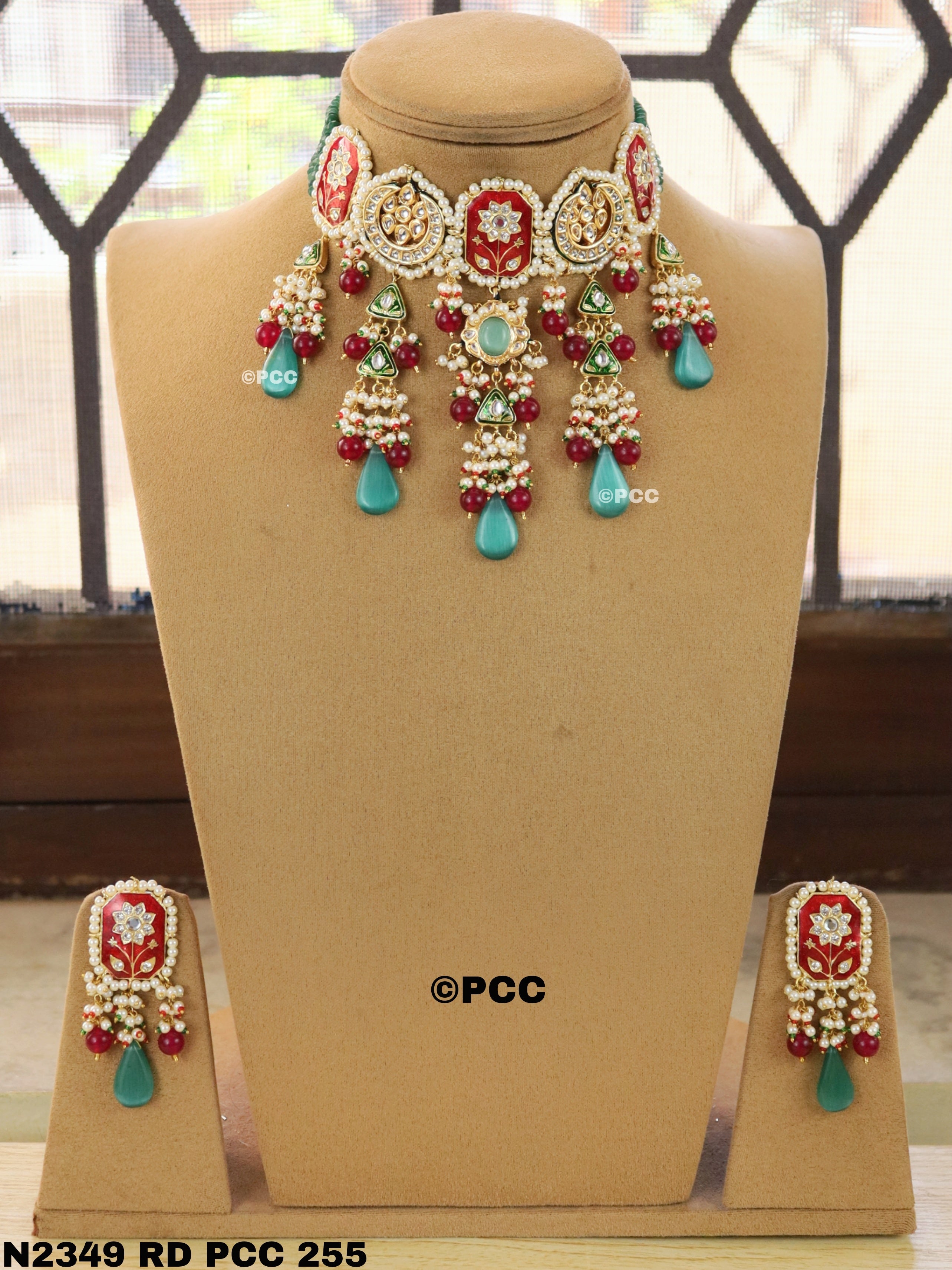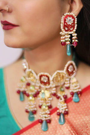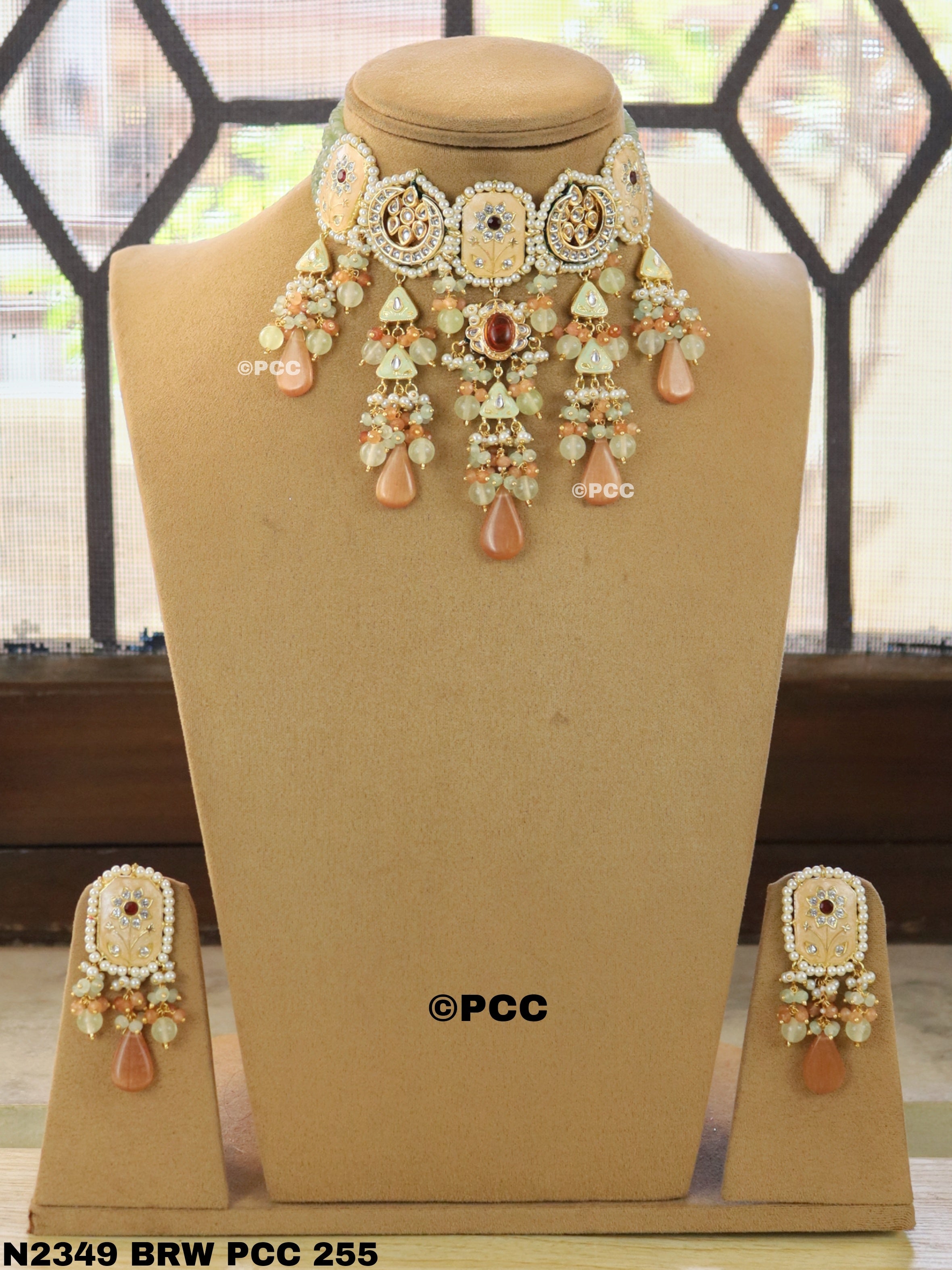 Jadau Meena Kundan Hand Work Necklace & Earrings.