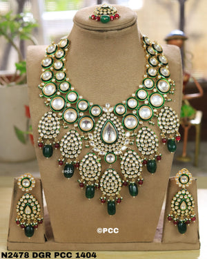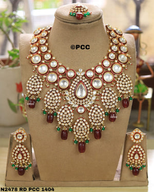Pinkcity Craft presents Handmade Bridal Heavy Royal Necklace & a pair of Earrings. This Set have Beautiful Hand work of Kundan Meena. The Natural Shell Pearl, Onyx Beads, Cheeds, Natural Semi Precious Stones Drop Tumbles makes it more Beautiful & Attractive. This Handmade Traditional Rajasthani Royal Kundan Meena Hasli Necklace gives a perfect look to Bride & will feel comfortable when wearing it.