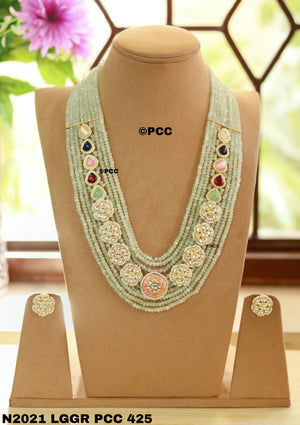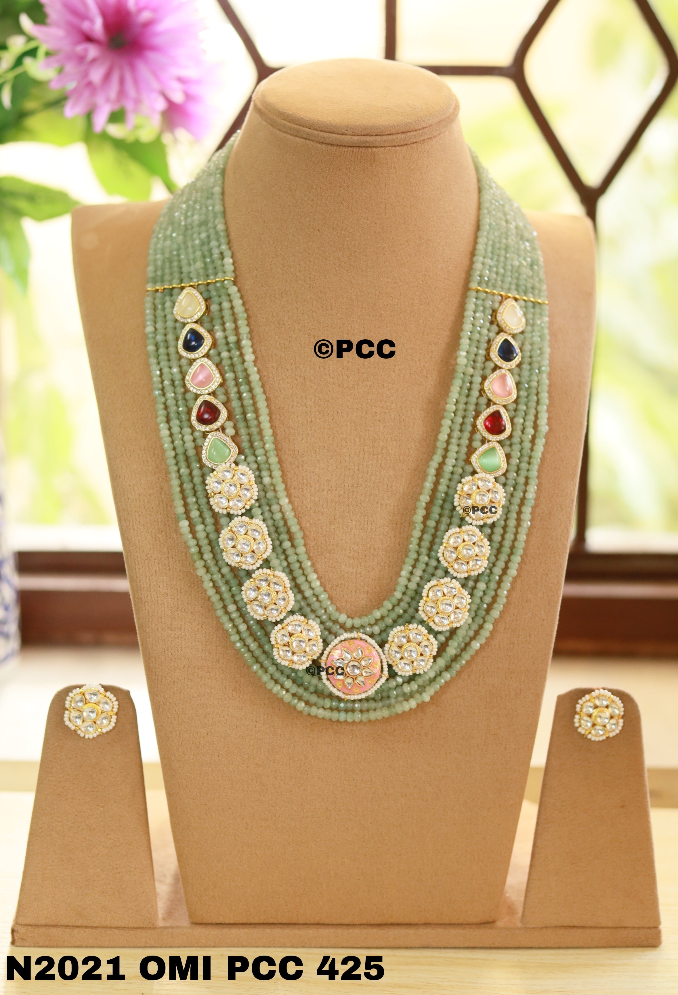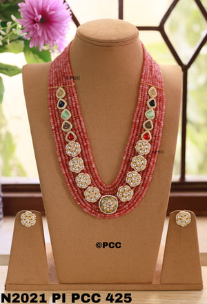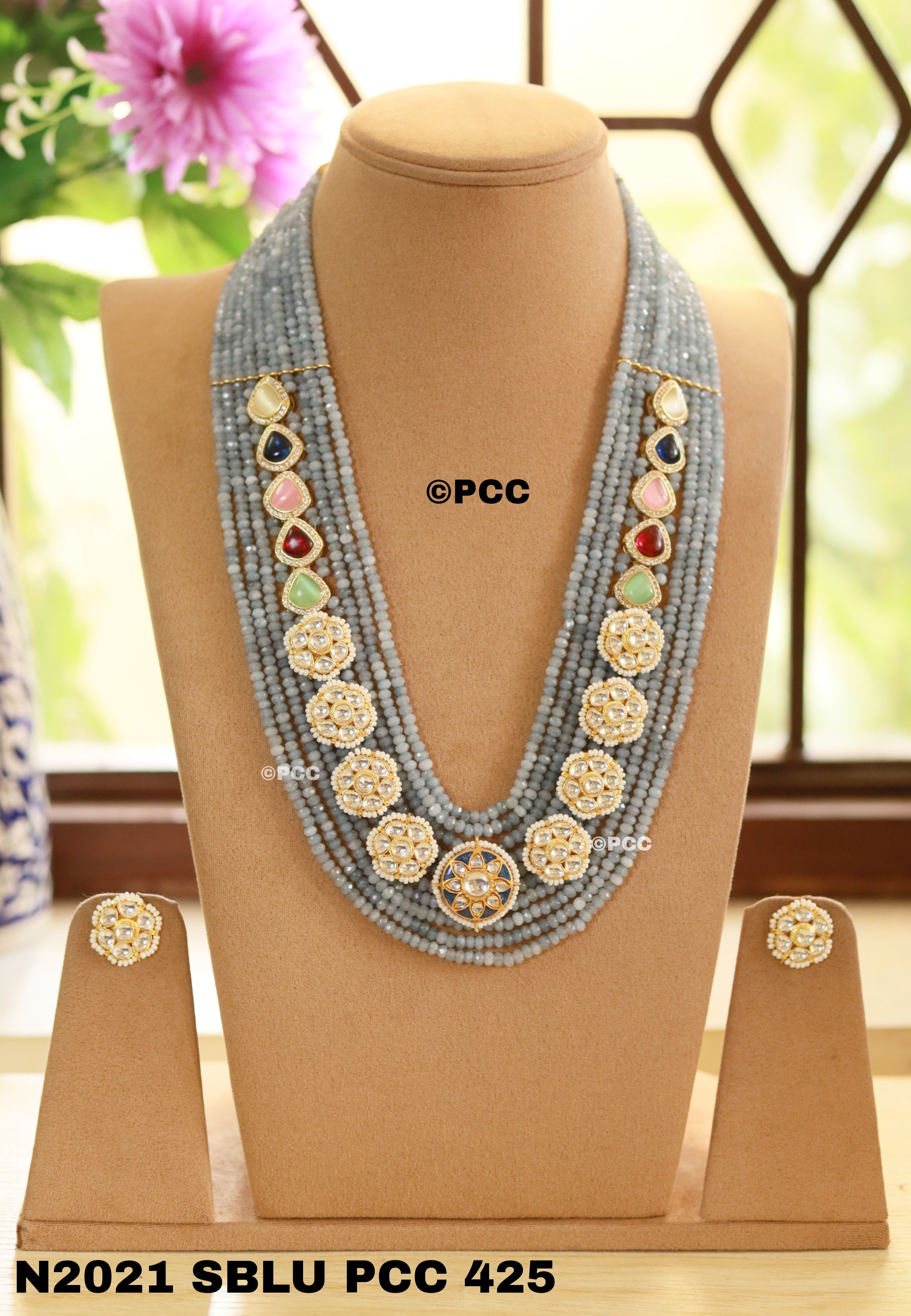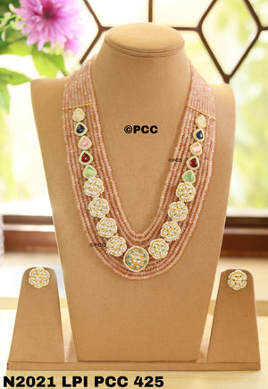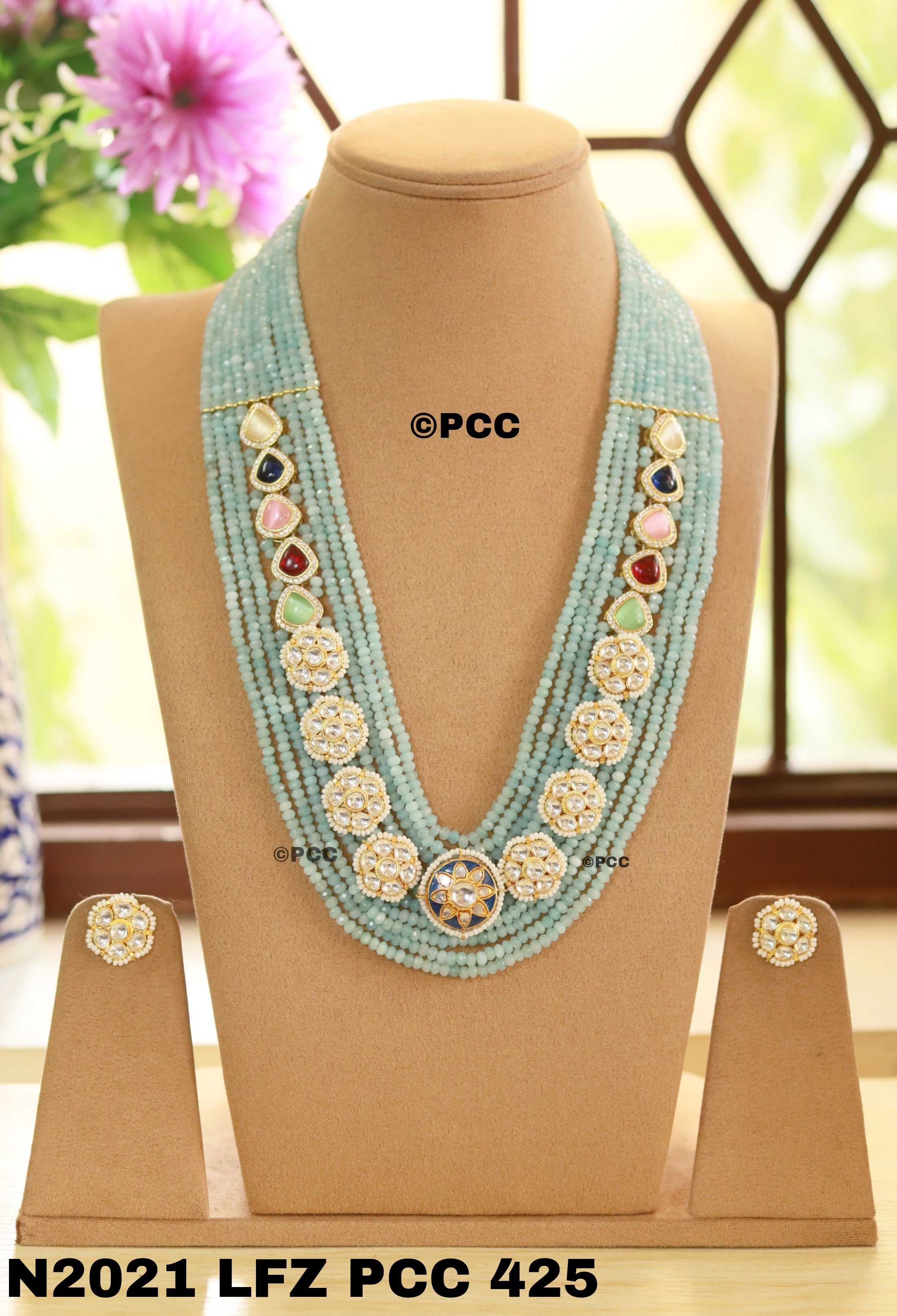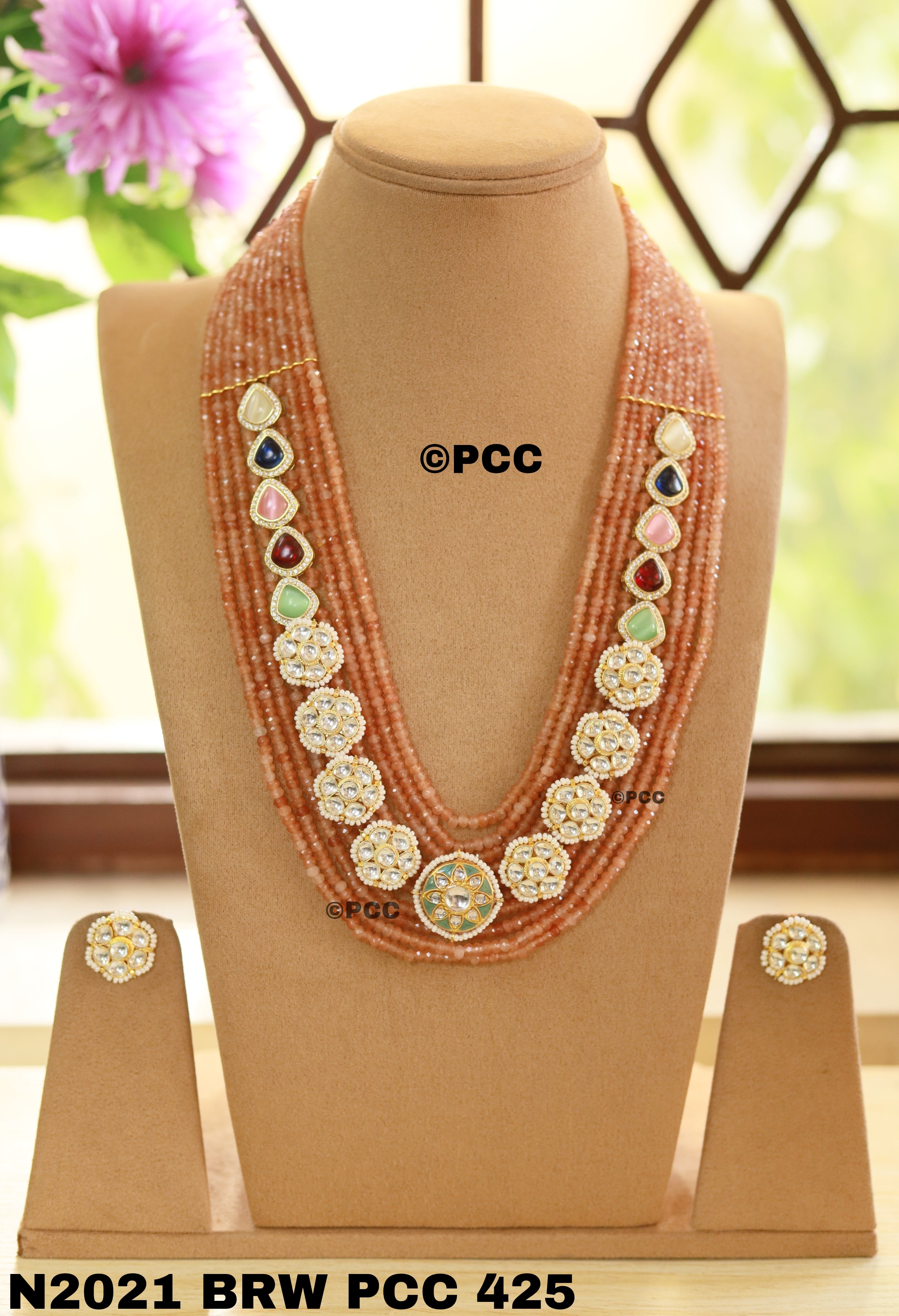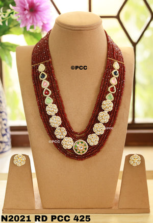 Royal Essence Women Multi Strand Beaded Mala Kundan Necklace
