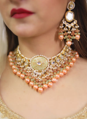 Rajasthani Traditional Handmade Kundan Choker Necklace with earrings set