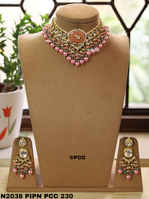 Pinkcity Craft presents Handmade Choker Necklace & a pair of Earring. It have Multistrand of Onyx Beads. The Natural Shell Round Pearl, Onyx Beads, & Shell Baroque Pearls Tumbles gives an aesthetic look to the Choker Necklace. This Handmade Traditional Rajasthani Kundan Choker Necklace is perfect to wear in the traditional occasions, wedding anniversary, parties and so on. You will feel comfortable when wearing it.