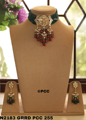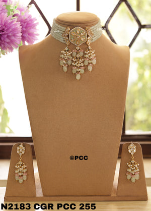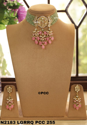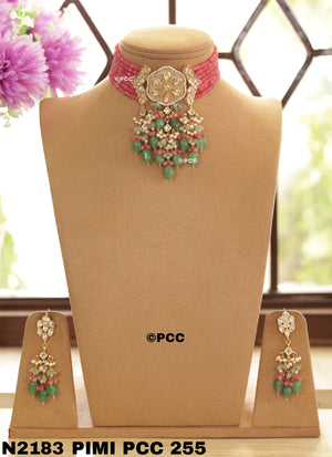 Pinkcity Craft presents this beautiful Necklace & Earrings Set. This Handmade Traditional Kundan Necklace Set is perfect for traditional occasions, wedding anniversaries, receptions, parties, and more.