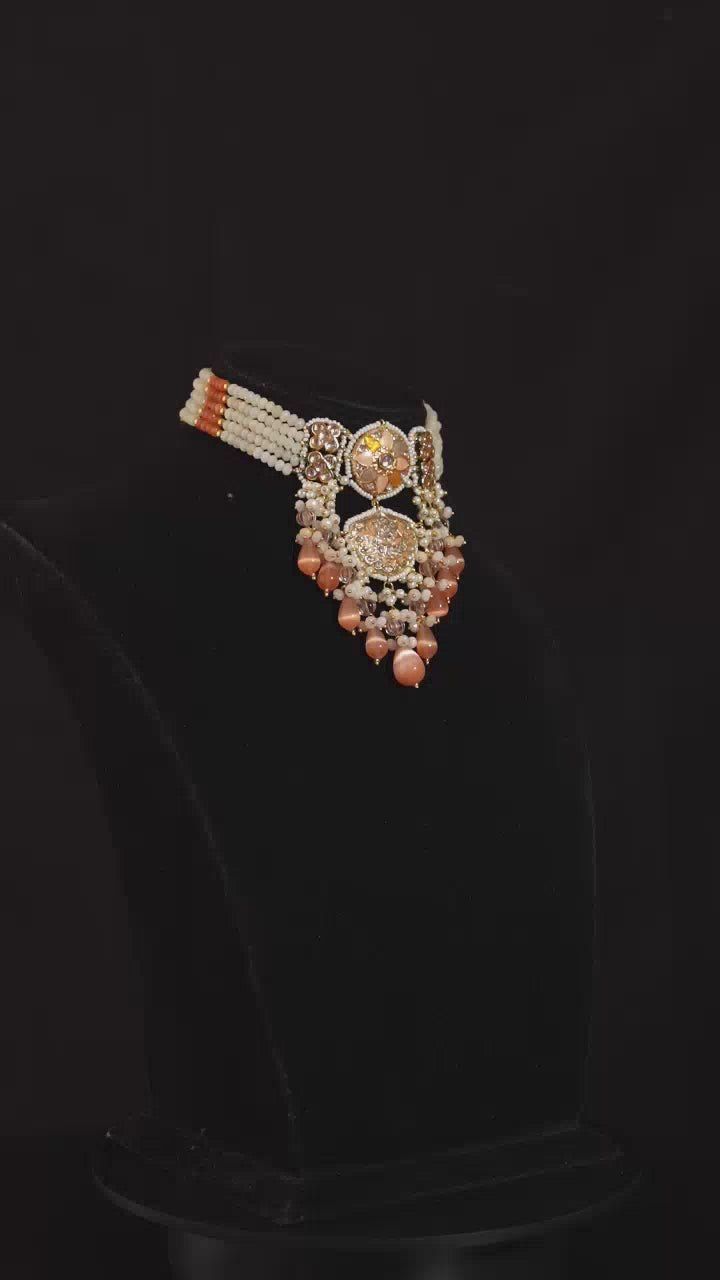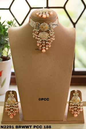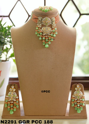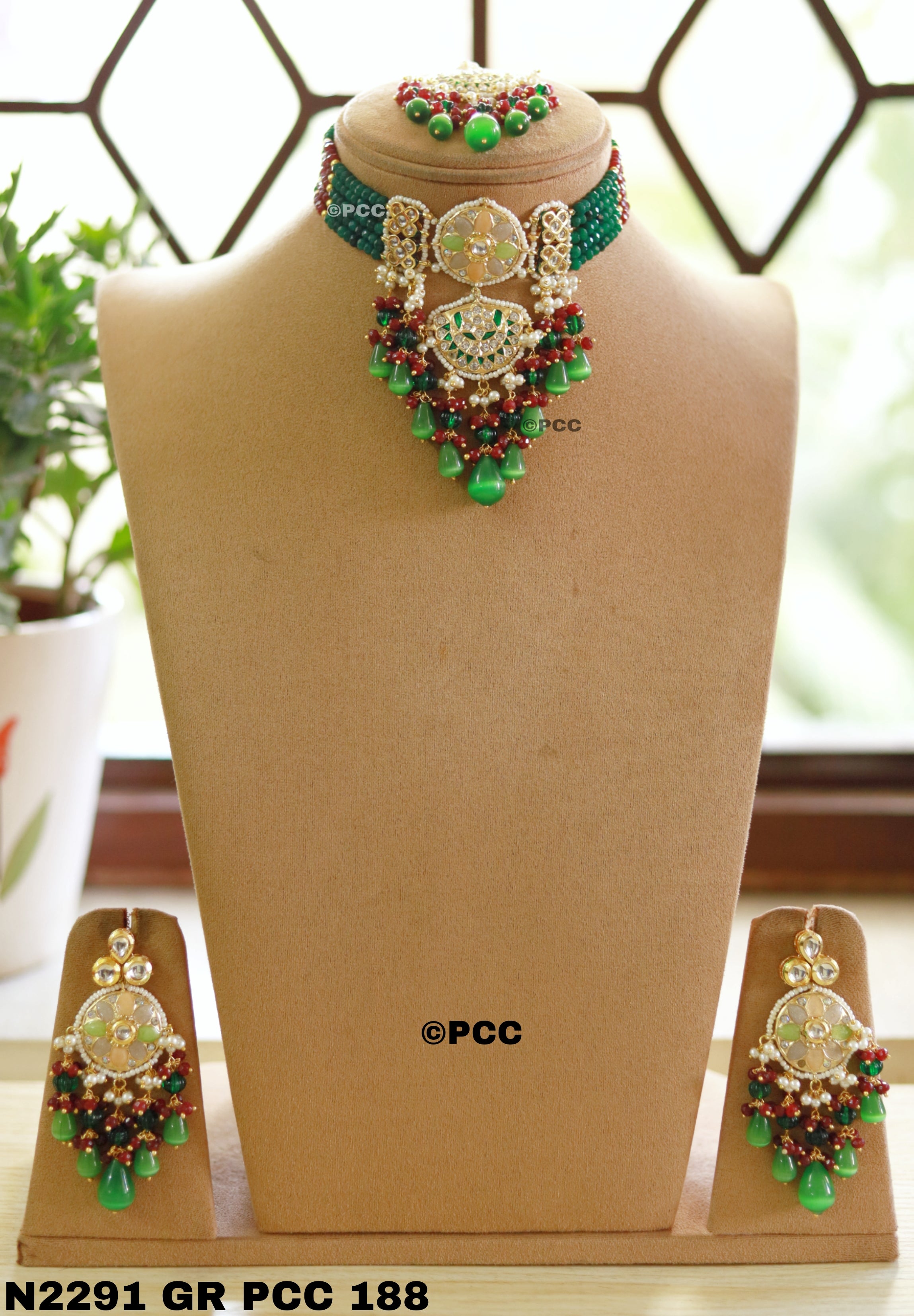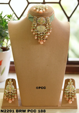 Introducing our stunning Handmade Choker Necklace Set, a true celebration of traditional artistry. This set features intricate Jadau and Meenakari Handwork paired with a Multi-Strand design.