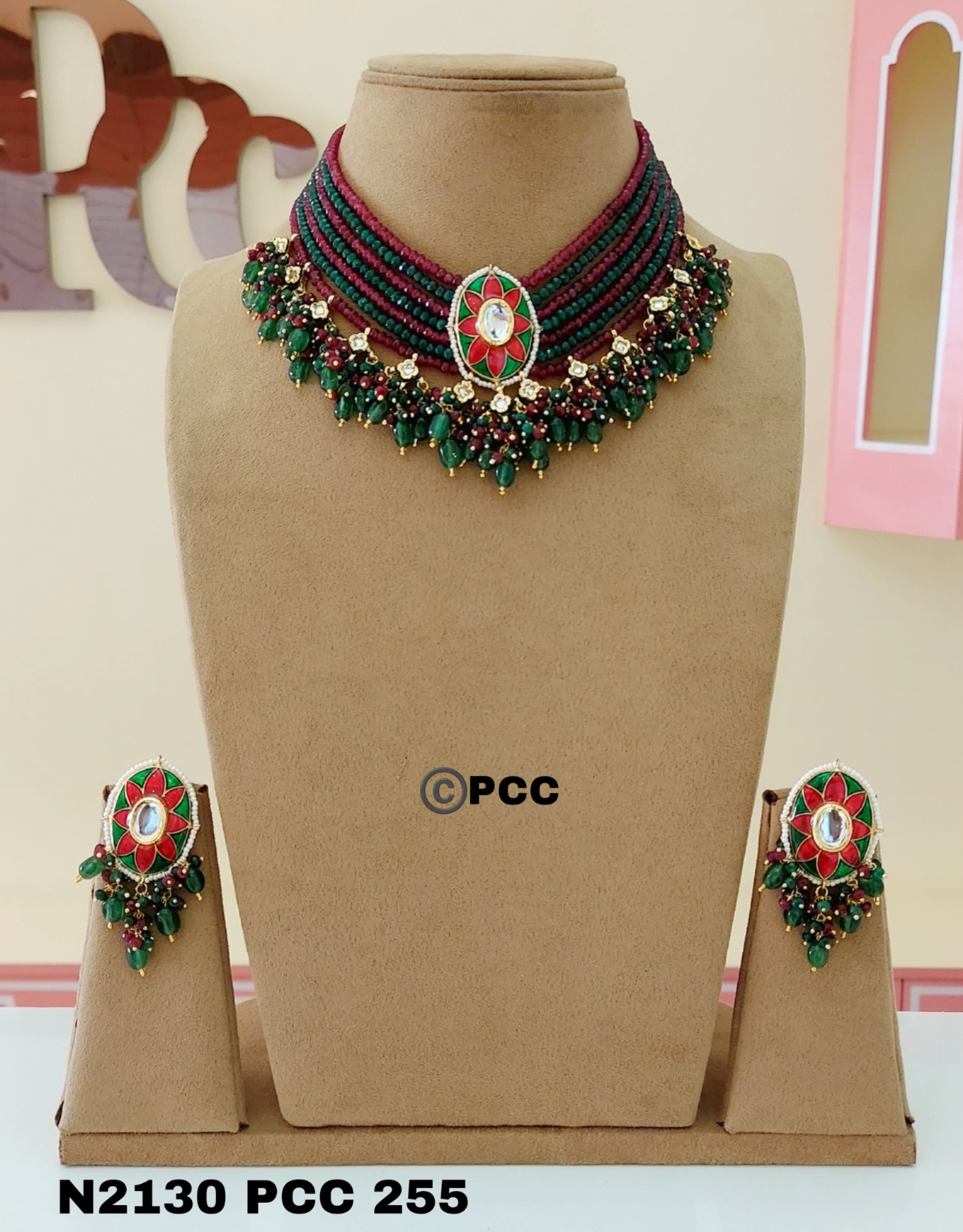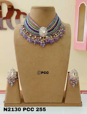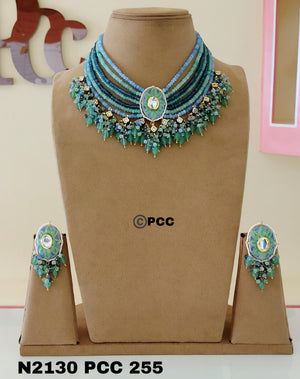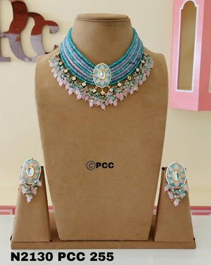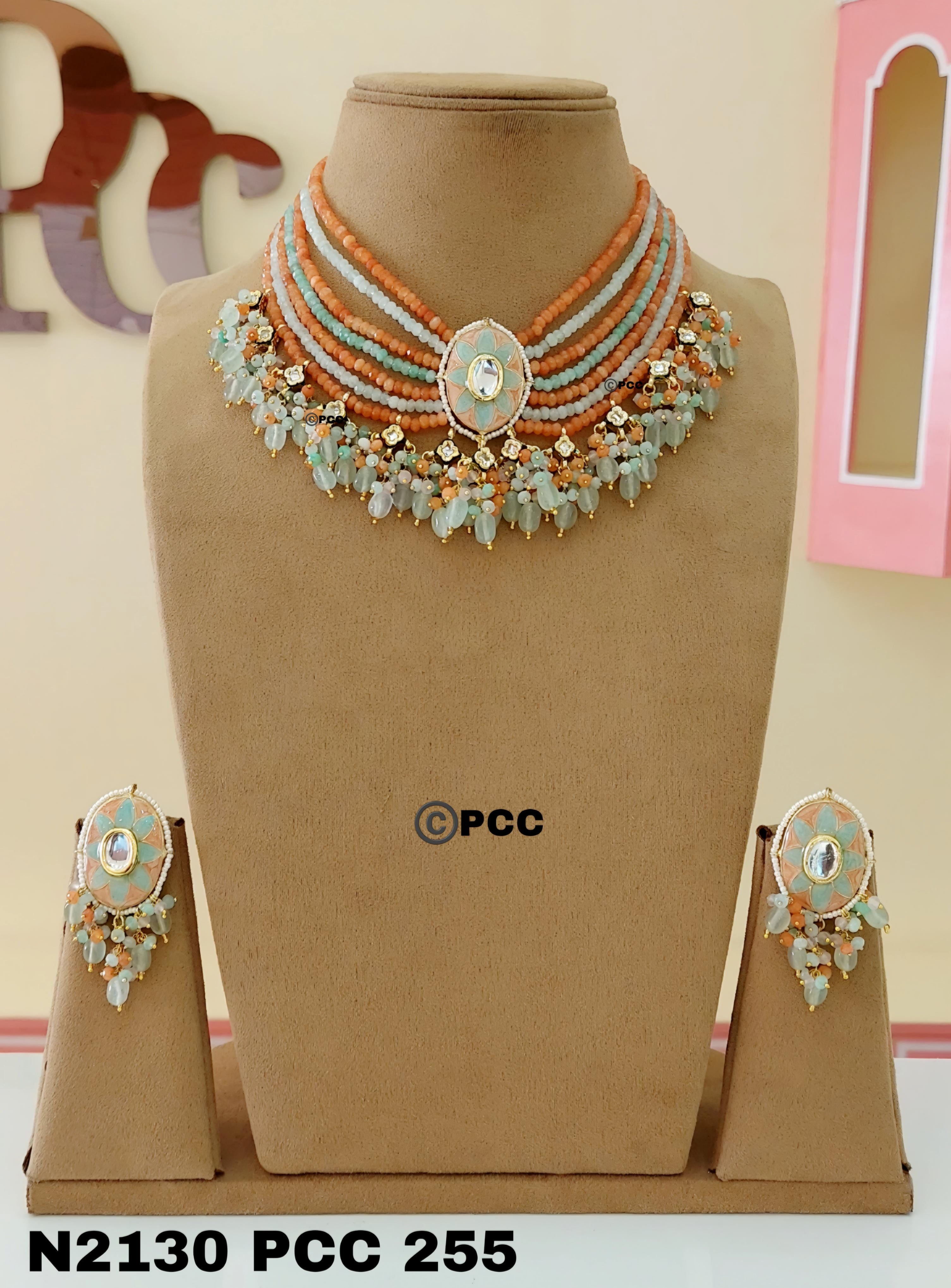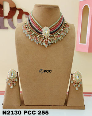 Indian Multicolor fusion Bridal Kundan Necklace & earrings set