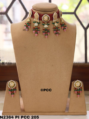 Pinkcity Craft proudly presents a stunning Handmade Bridal Necklace set, complete with a pair of elegant earrings. Designed with the bride in mind, this traditional Rajasthani Meenakari necklace exudes elegance and ensures unmatched comfort for the wearer.