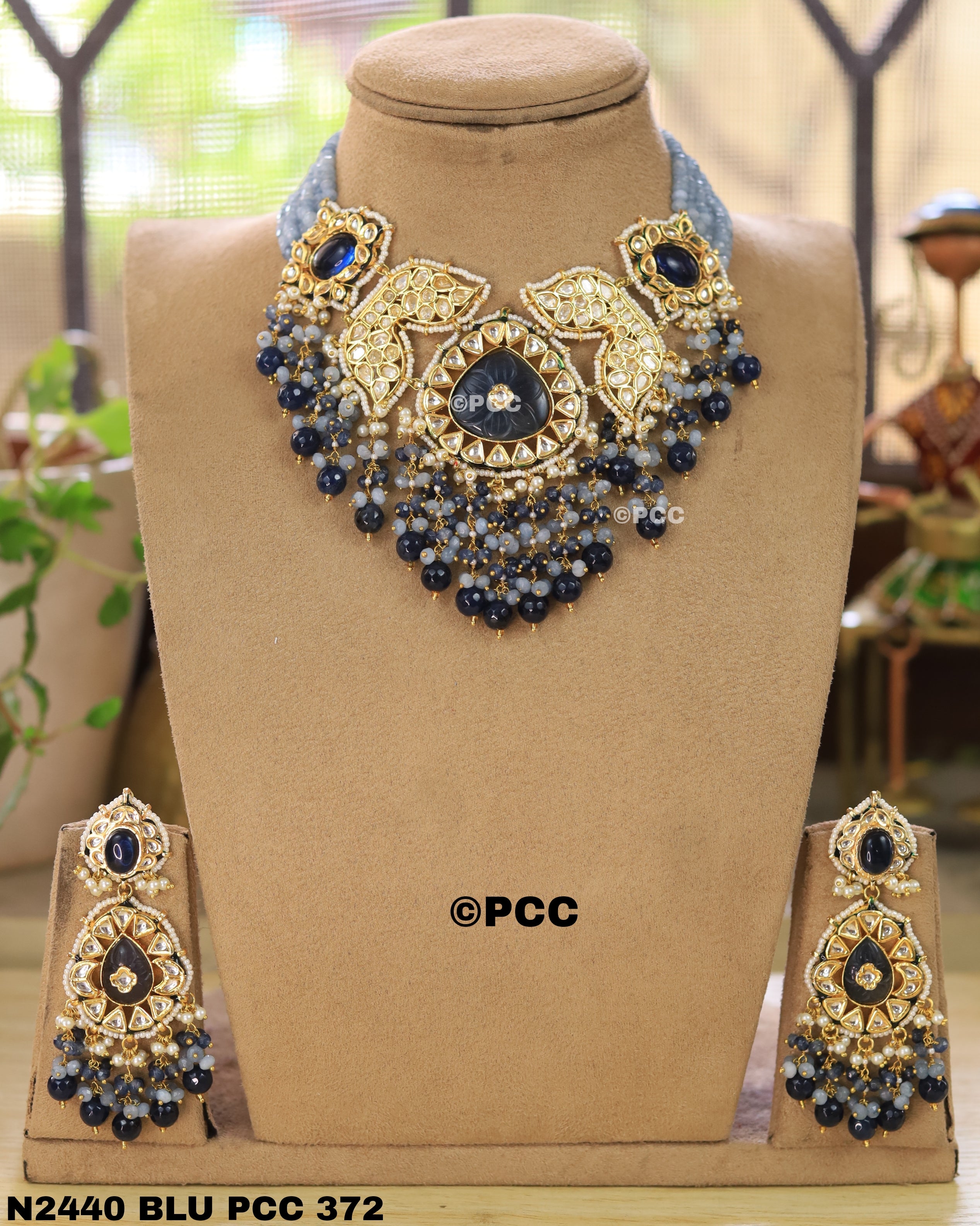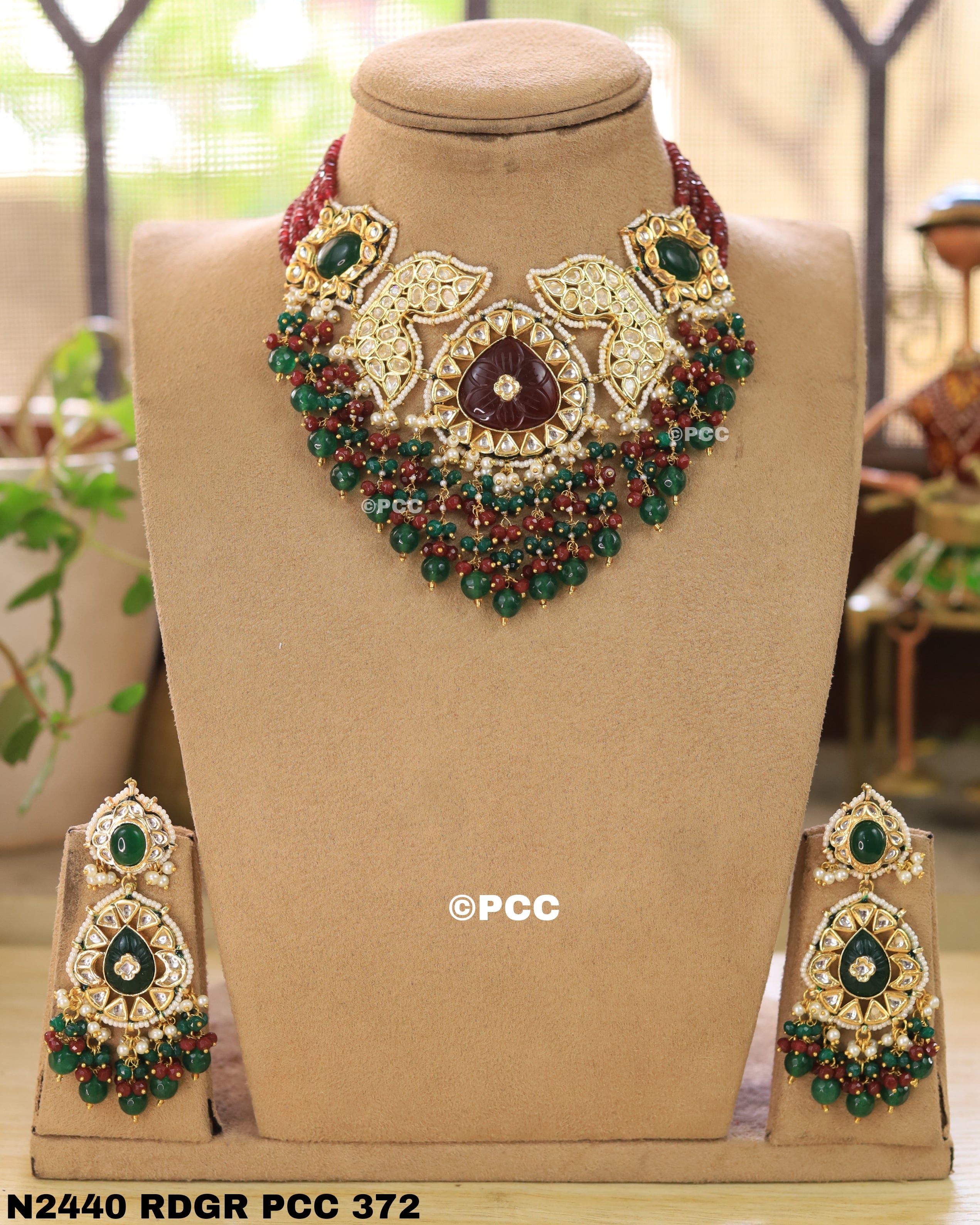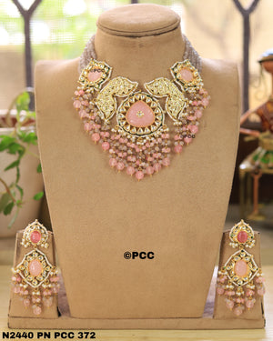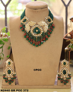 Pinkcity Craft presents Handmade Choker Necklace & a pair of Earrings. Necklace have Onyx Beads Multi Strand. Have Polki Kundan & Meenakari handwork.The Onyx Beads, Shell Pearl & Natural Semi Precious Gemstone Drop Tumbles makes the necklace more Beautiful & Attractive. This handmade Traditional Rajasthani Choker Necklace is perfect to wear in traditional occasions, anniversary, parties, and on many other occaasions. You will feel comfortable when wearing it.