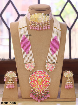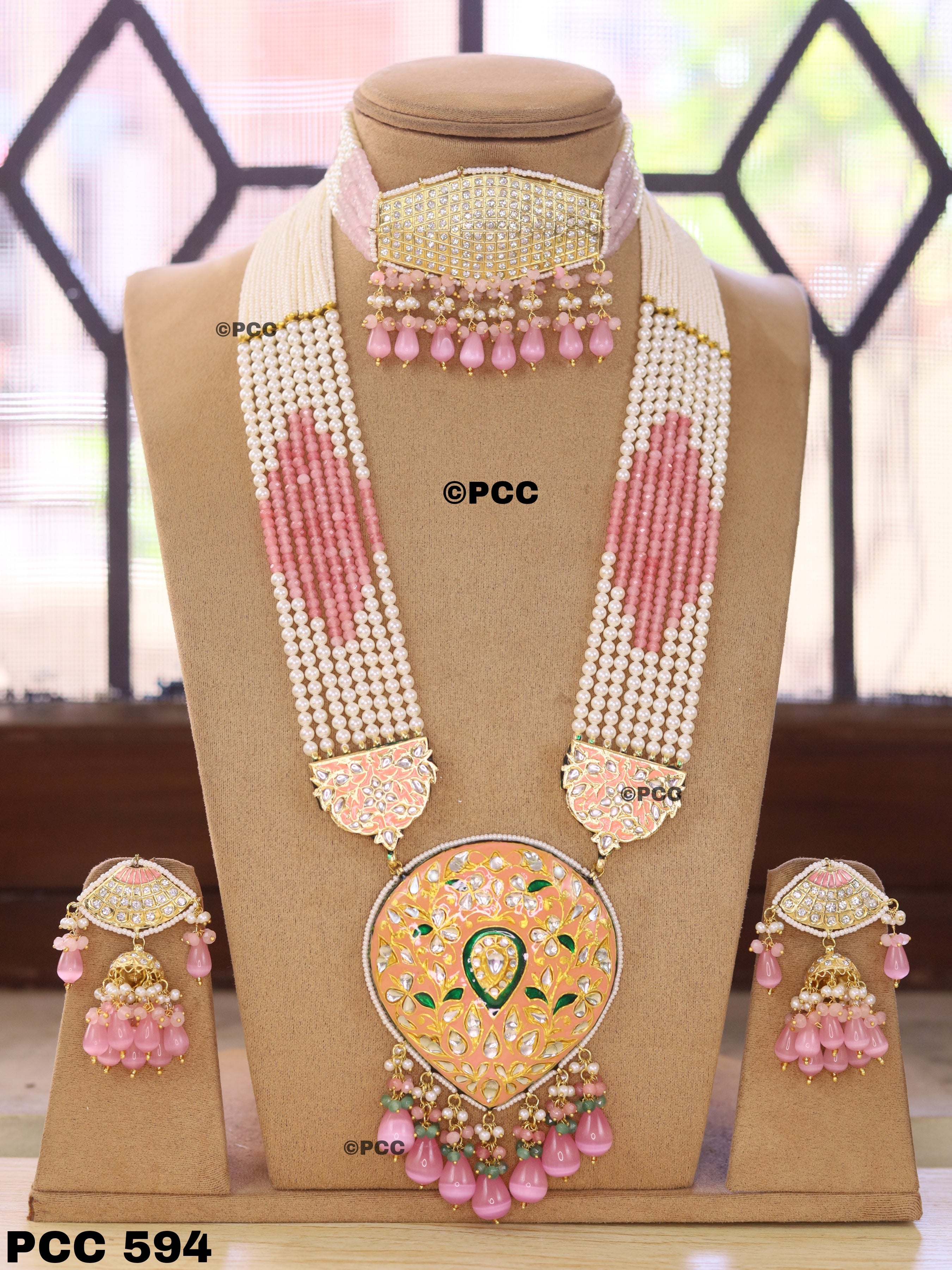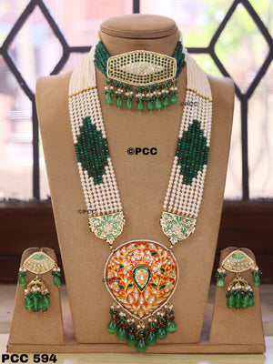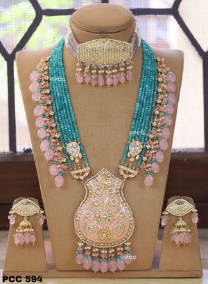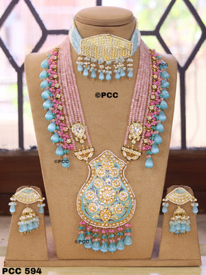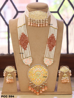 This stunning bridal necklace set includes a choker necklace and matching earrings, crafted with a gold-tone brass base. This wedding necklace set is designed to add charm and elegance to your jewelry collection, making you the center of attention on any special occasion.