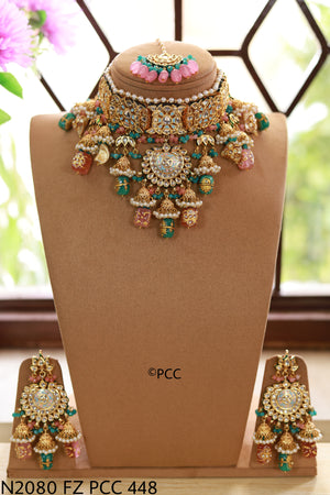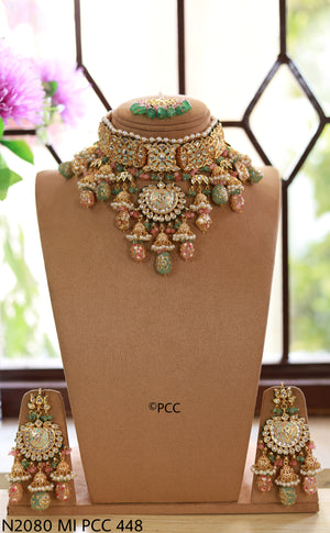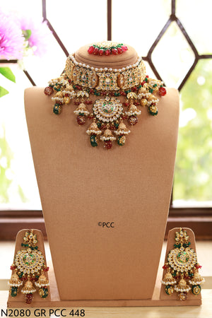Pinkcity Craft presents an elegant Handmade Bridal Necklace, Earrings, and Tikka Set.