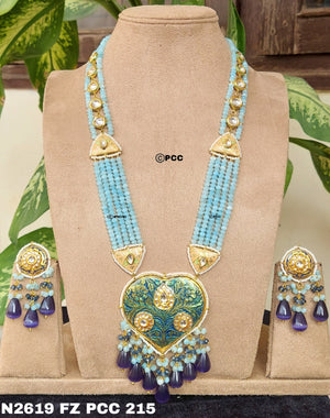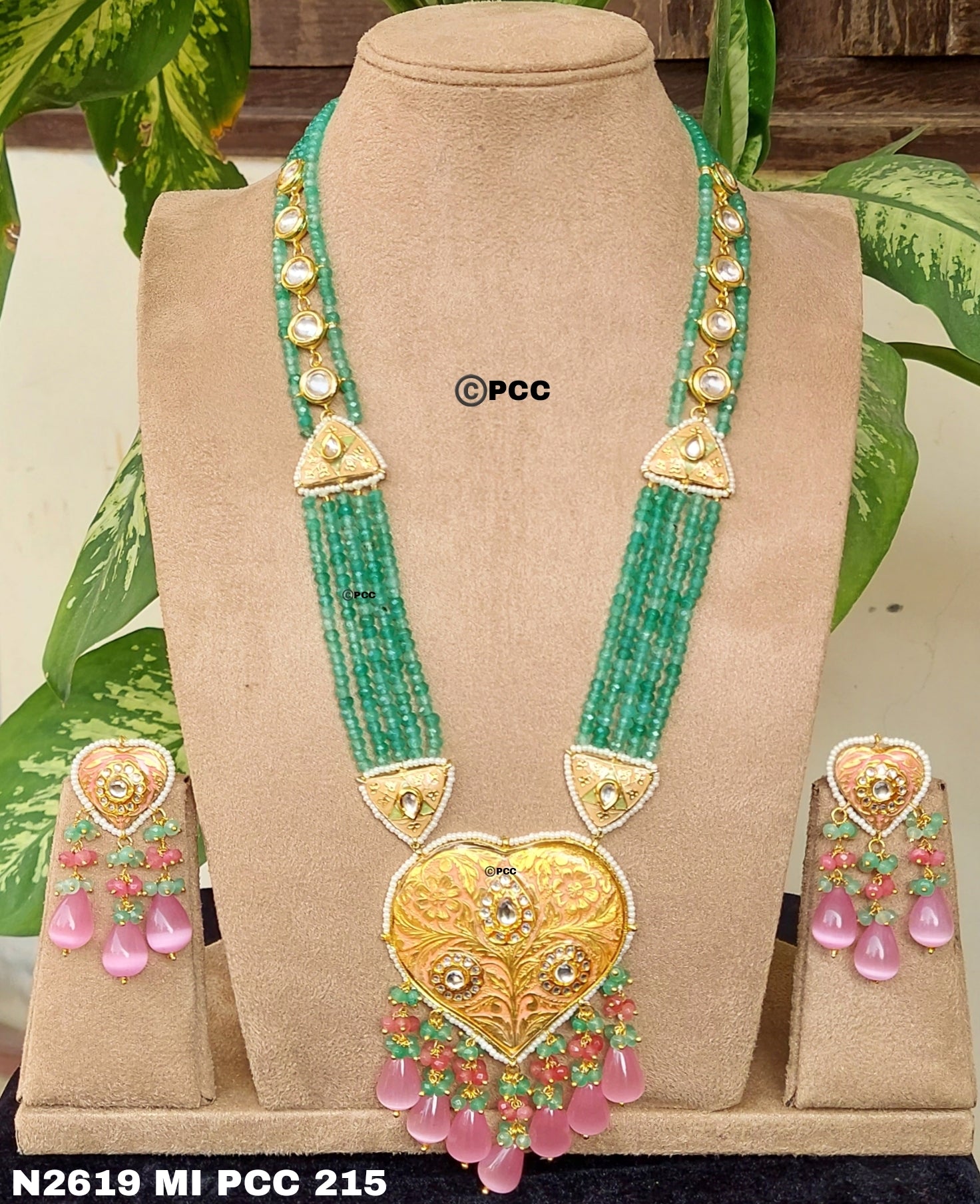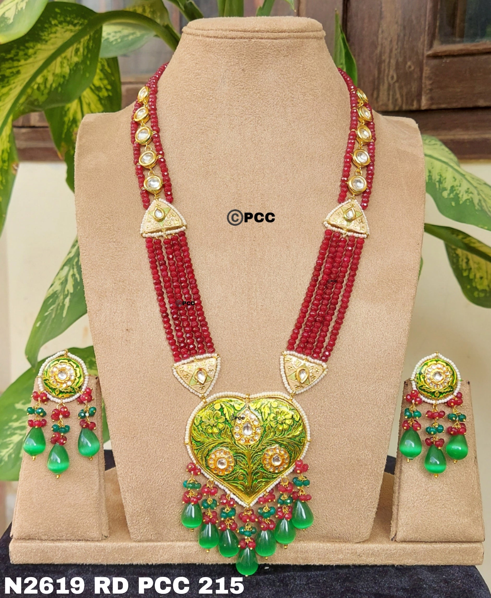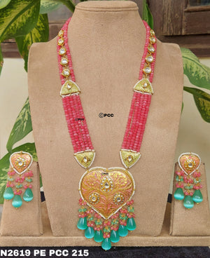 Pinkcity Meena Heart Necklace Set by Pinkcity Craft is a vibrant celebration of Indian heritage, crafted for those who appreciate artistry with a modern flair. The centerpiece—a beautifully engraved heart motif—shimmers with traditional Meenakari enamelwork, accented by layers of onyx beads and quartz drops that evoke regal elegance and romance. Each element is meticulously set to showcase the richness of Pinkcity craftsmanship, making this set a standout choice for festive occasions and weddings.